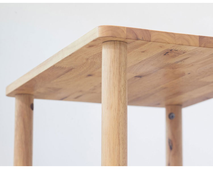 本体材質はラバーウッド無垢材です。天然木特有の木目・節を活かした木質感の高い風合いで、お部屋の雰囲気をぐっと良くしてくれますよ。