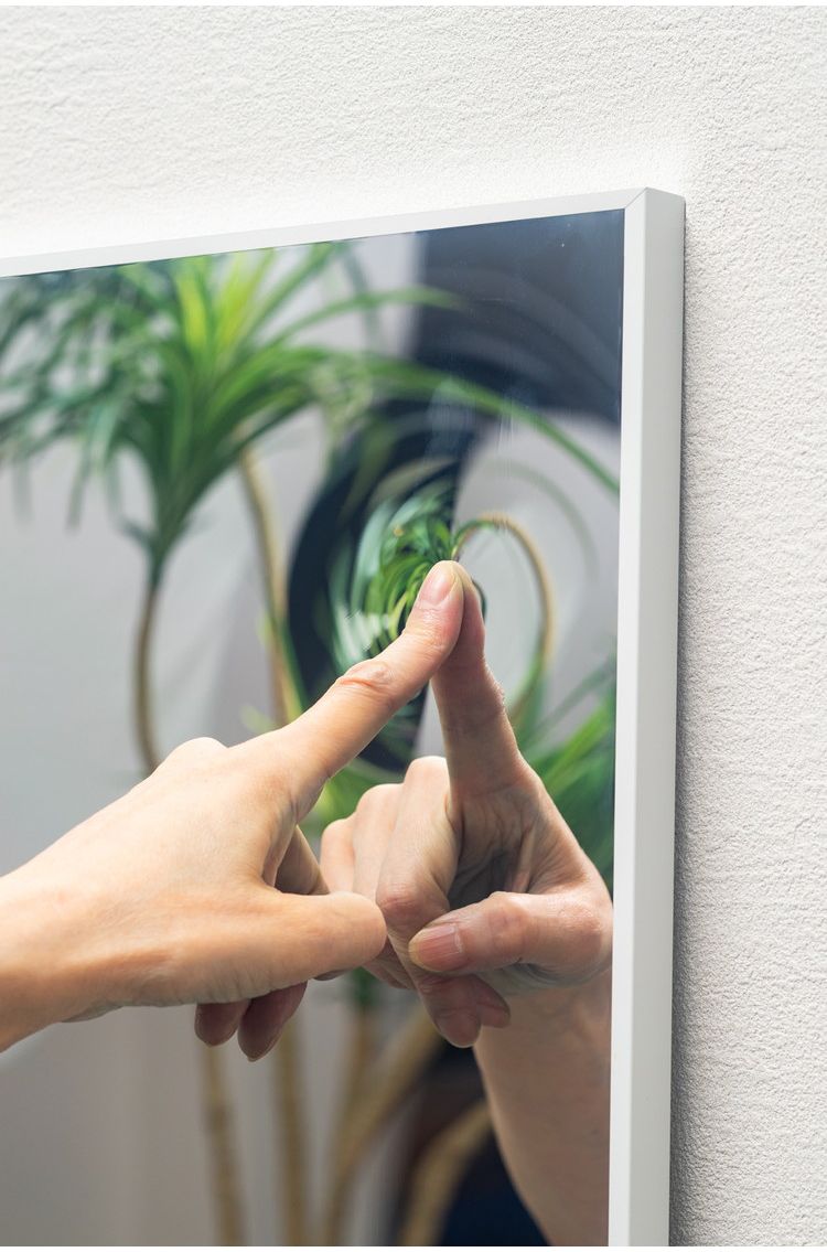 ミラー裏面に壁掛け用金具付き/立て掛け設置できる滑り止めゴム脚付き