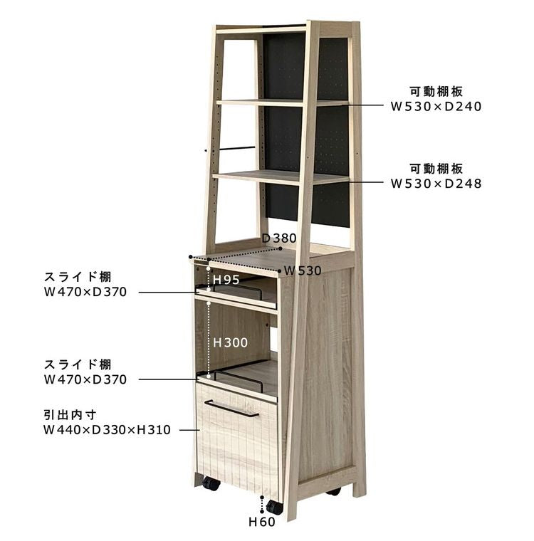 ・耐荷重(kg):天板:10 可動棚:15 固定棚:20 スライド棚:15