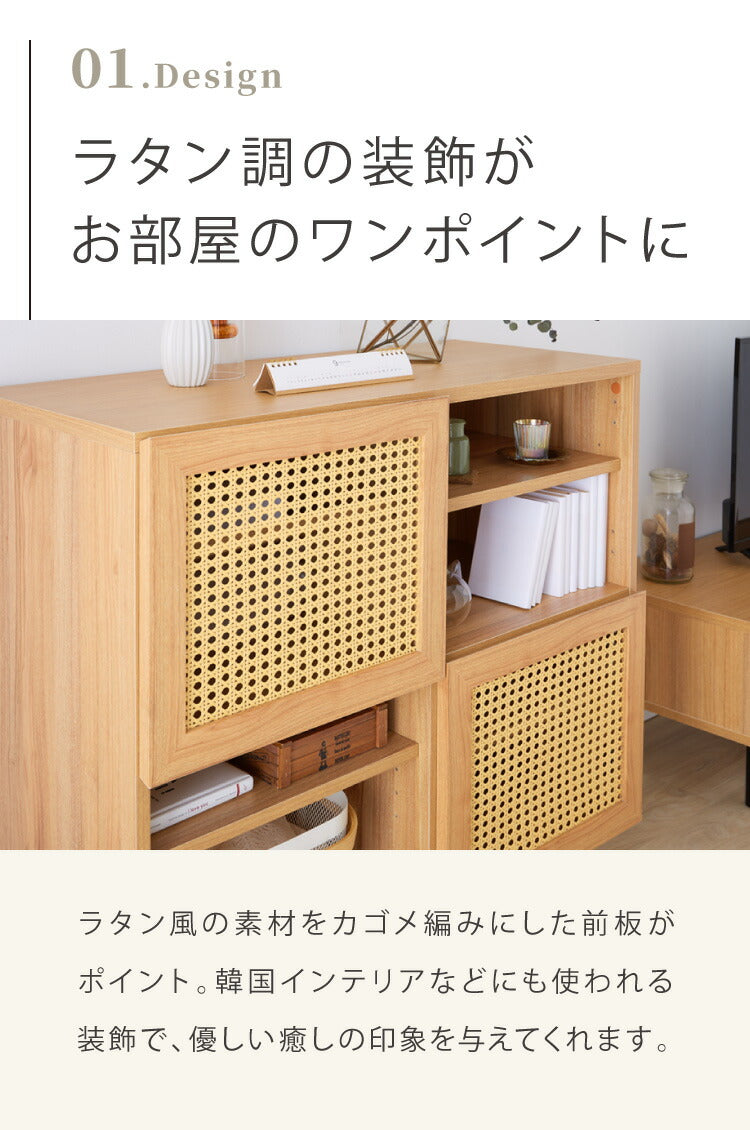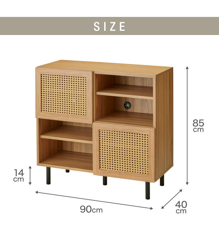 収納棚 幅90cm ラタン調 キャビネット サイドボード リビングボード リビング 棚 収納 サイドチェスト サイドキャビネット ラタン風 脚付き スチール脚 木目調 おしゃれ 韓国インテリア(代引不可)