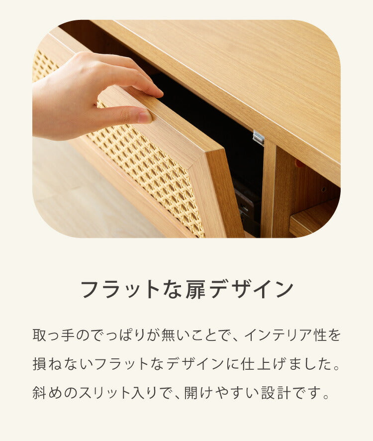 前板はラタン風素材をカゴメ編みして仕上げています。
