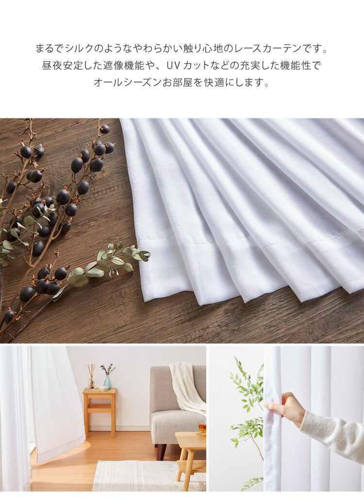 遮像 レースカーテン シルクタッチ 幅200 一枚入り セミオーダー 省エネ 遮熱 保温 UVカット 洗える ウォッシャブル おしゃれ かわいい ボイル 北欧(代引不可)