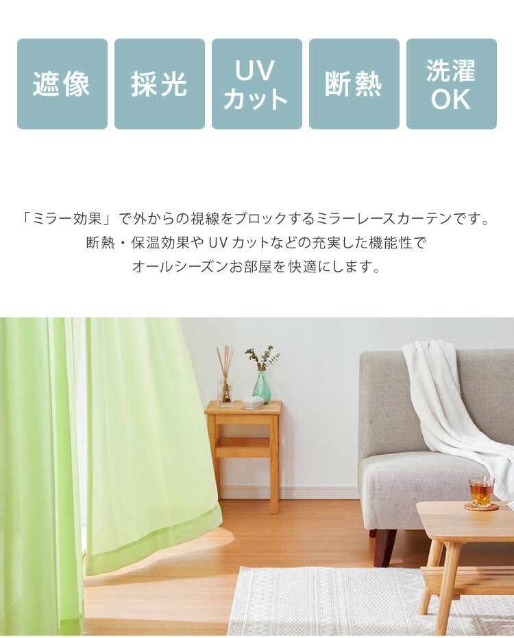 機能: 目隠し(遮へい) 遮熱 断熱 UVカット(87%) ウォッシャブル(水・丸洗いOK)