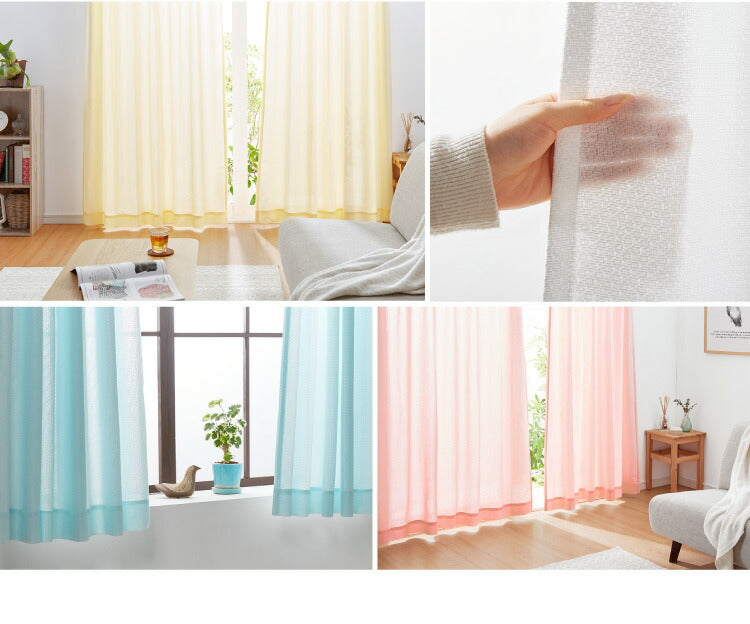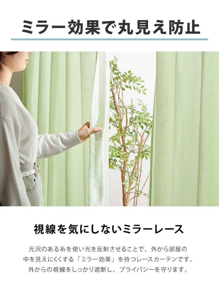 レースカーテン 2枚組 パステルカラー カラーレース UVカット 夜も見えにくい 保温 ミラーレースカーテン ウォッシャブル 洗える 省エネ(代引不可)