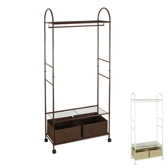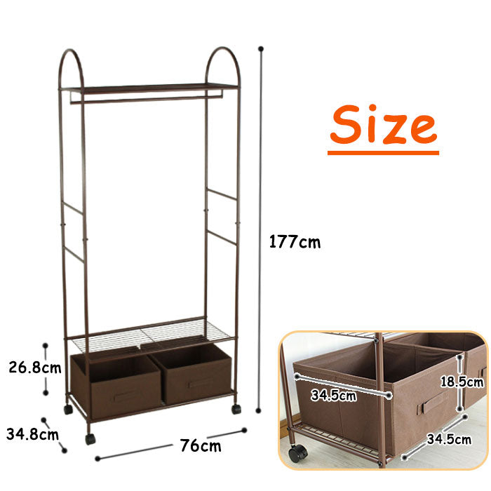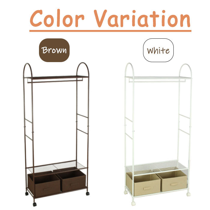 ハンガーには丈の長い洋服が掛けられ、ボックスが2個付いているので小物も収納できます。
