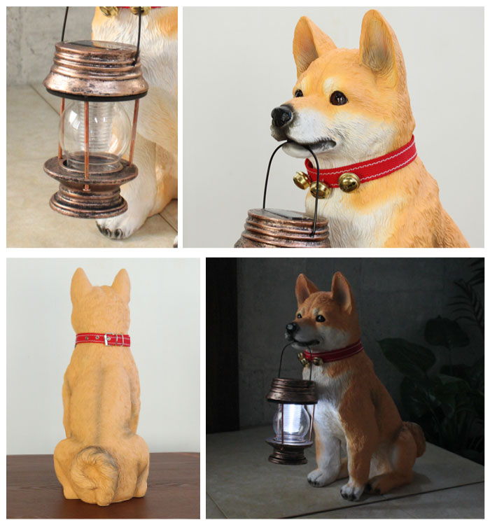 ソーラーライト付柴犬ポチ アニマル 照明 ライト ランプ 照明器具 デスクライト テーブルランプ スタンドライト 電気スタンド 卓上ライト 玄関 屋外 アウトドア 自動点灯 エントランス 庭 かわいい(代引不可)