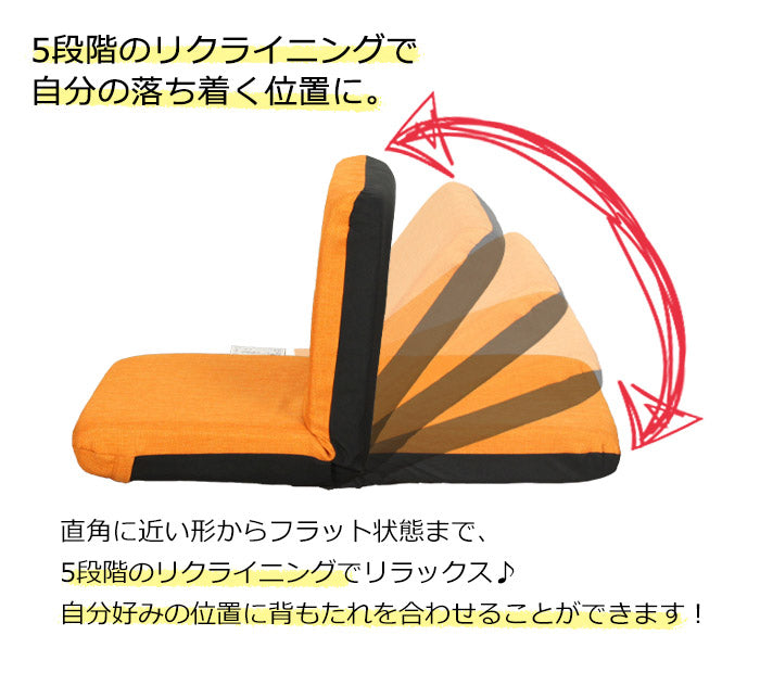 5段階リクライニングでお好みの角度でゆったりできます。コンパクト設計で持ち運びがラクです。お子様や来客用にも活躍します。