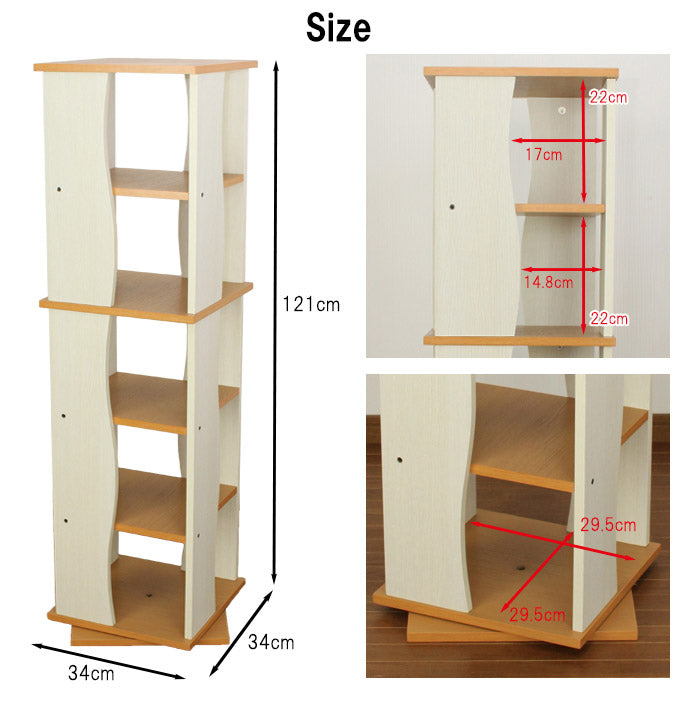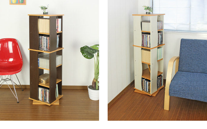 回転式木製ラック5段 収納 収納家具 リビング収納 本棚 ラック 棚 収納棚 書棚 回転式本棚 回転式コミックラック コミックラック タワーラック スリム 大容量 スリムラック 回転式(代引不可)