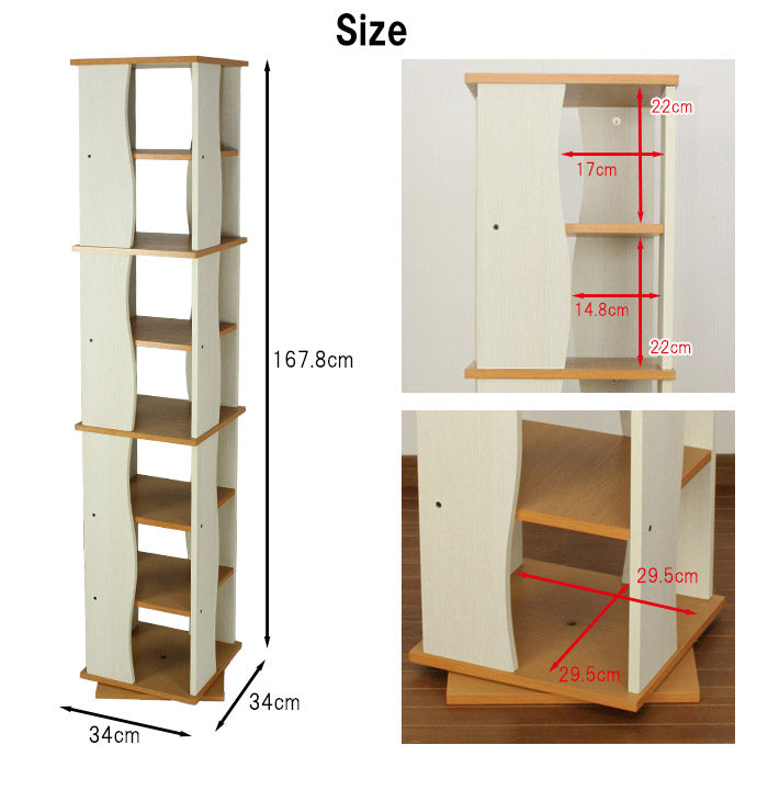回転式木製ラック7段 収納 収納家具 リビング収納 本棚 ラック 棚 収納棚 書棚 回転式本棚 回転式コミックラック コミックラック タワーラック スリム 大容量 スリムラック 回転式(代引不可)
