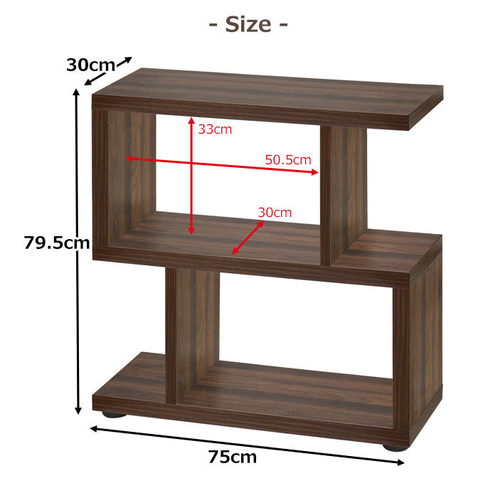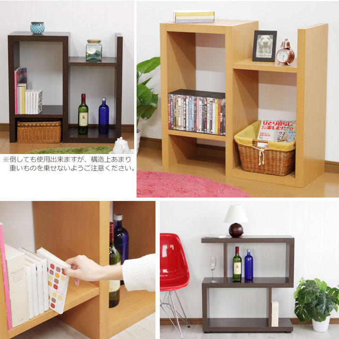 デザインラック2段 S字ラック 木製 S字 見せる収納 ディスプレイ オープンラック シェルフ 書棚 ラック 収納棚 白 棚 本棚 デザインラック おしゃれ棚 インテリアラック おしゃれ ジグザグラック(代引不可)