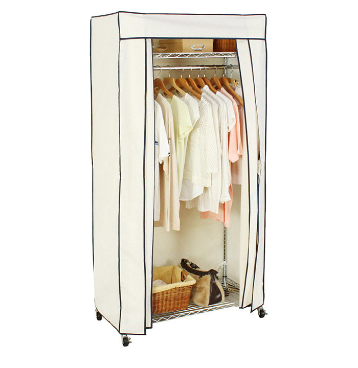 カバー付き頑丈ハンガーラック 幅90cm 収納 収納家具 リビング収納 本棚 ラック ハンガーラック コートハンガー ハンガー掛け クローゼット ワードローブ スチール製 UV・PV加工 紫外線カット(代引不可)