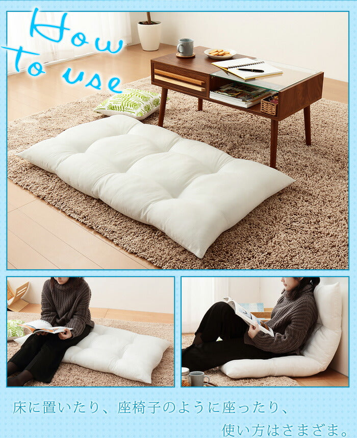 こちらの商品は中綿を詰めた状態だと(約62×112×高さ12cm)になります。