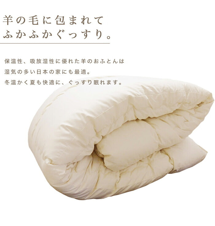 日本製 国産 掛け布団 掛けふとん シングル 羊毛布団 羊毛掛け布団 洗える 清潔 洗える布団 ボリューム 掛布団 150×210(代引不可)