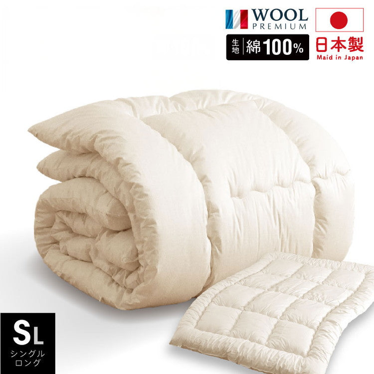フランス産 羊毛100% 掛け布団 シングルロング 日本製 羊毛100% 掛け布団 ロング 国産 羊毛 掛け布団 匂いの少ないフランス産プレミアムウール使用 日本製(代引不可)