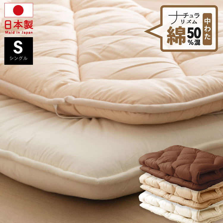 綿50%混 ボリューム敷パッド シングル 日本製 綿混 ボリューム敷きパッド シングル 国産 ボリューム ベッドパッド 敷パッド 敷きパット 綿50%使用(代引不可)