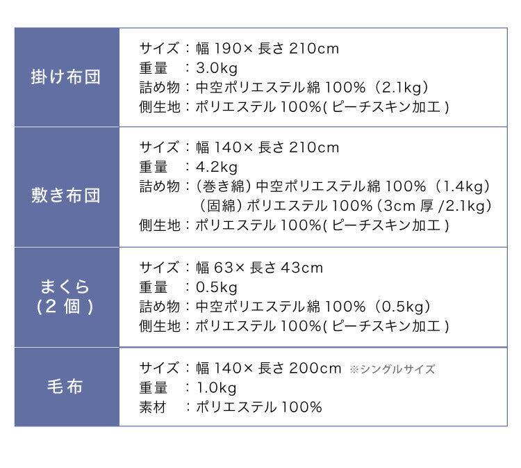 【掛け】3.0kg 【敷き】4.2kg 【 枕 】0.5kg