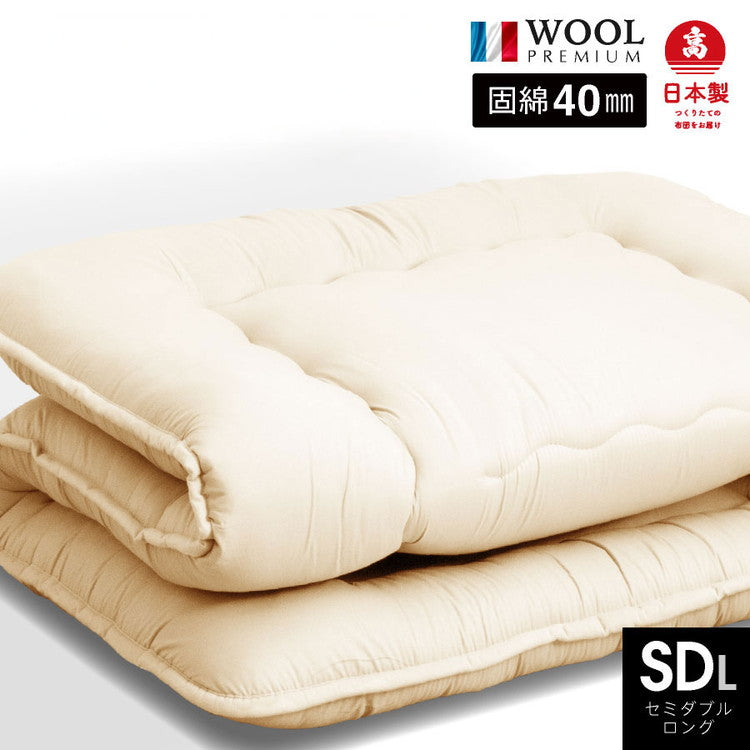 フランス産 羊毛100% 敷布団 セミダブルロング 日本製 羊毛100% 敷き布団(固綿入り) セミダブルロング 国産 羊毛100% 匂いが少ないフランス産プレミアムウール(代引不可)