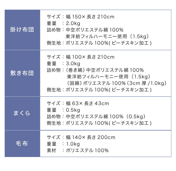 【掛け】2.0kg【敷き】3.0kg【 枕 】0.5kg