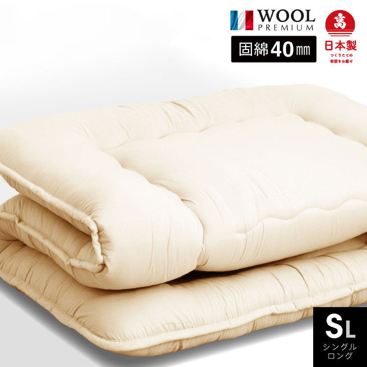 フランス産 羊毛100% 敷布団 シングルロング 日本製 羊毛100% 敷き布団(固綿入り) ロング 国産 羊毛100% 匂いが少ないフランス産プレミアムウール 羊毛敷布団(代引不可)