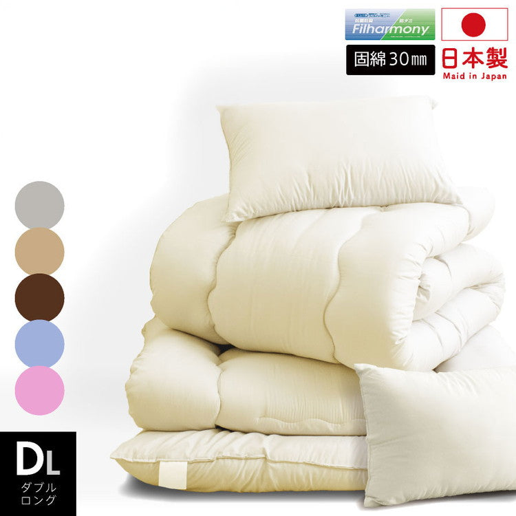 防ダニ 洗える 布団4点セット ダブルロング 日本製 防ダニ抗菌 布団3点セット(固綿入り) ダブル ロング 布団セット 敷布団 布団干し ふとんセット(代引不可)