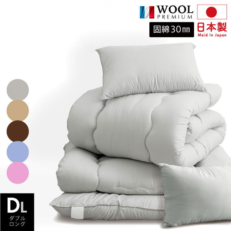 羊毛混 洗える 布団4点セット ダブルロング 日本製 羊毛混 布団3点セット(固綿入り) ダブル ロング 国産 日本製 羊毛布団 セット 3点セット 羊毛 組布団(代引不可)