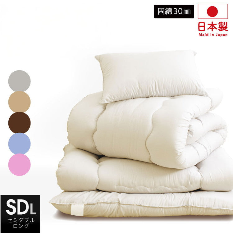 洗える 固綿入り 布団3点セット セミダブルロング 日本製 合繊 布団3点セット(固綿入り) セミダブル ロング 国産 ふとんセット 日本製 布団セット 敷布団 布団干し(代引不可)