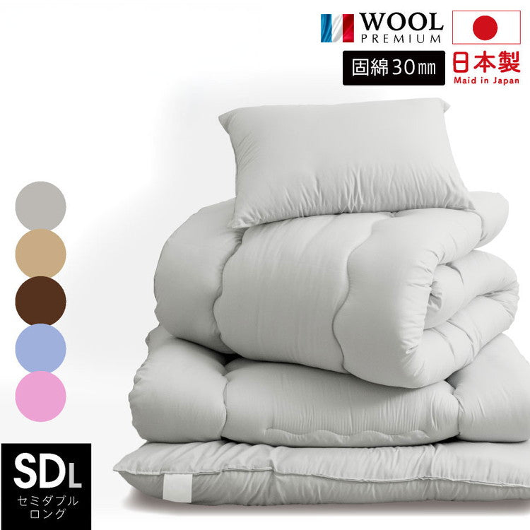 羊毛混 洗える 布団3点セット セミダブルロング 日本製 羊毛混 布団3点セット(固綿入り) セミダブル ロング 国産 日本製 羊毛布団 セット 3点セット 羊毛 組布団(代引不可)