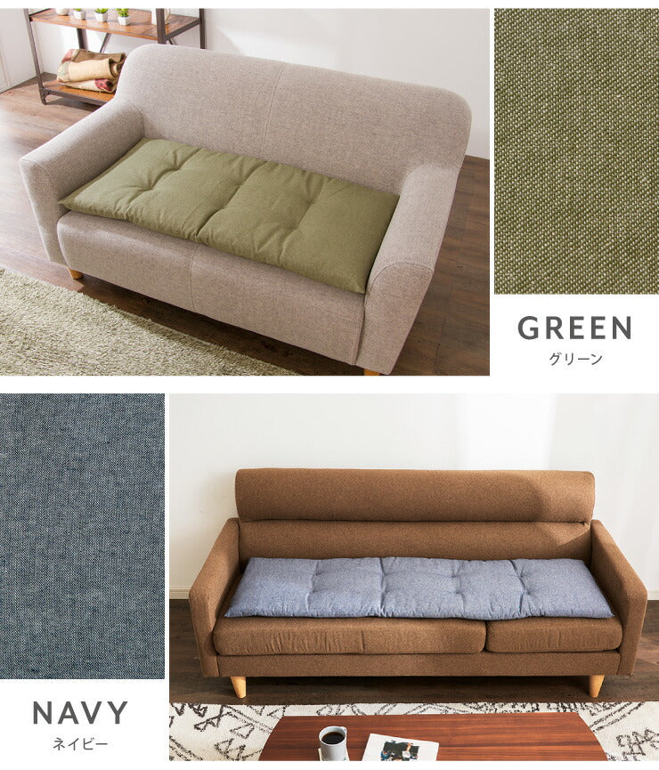 奥行50cmでふっくらクッション性もあり、座面が硬めのソファやクッション性がなくなってきたソファに敷くだけで快適に。