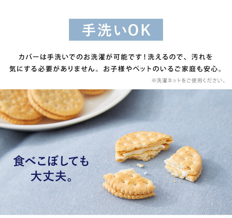 ・表生地は綿100%にはっ水機能付き。飲み物などうっかりこぼしても、すぐに拭き取れば安心です。ペットがいるご家庭でも安心。