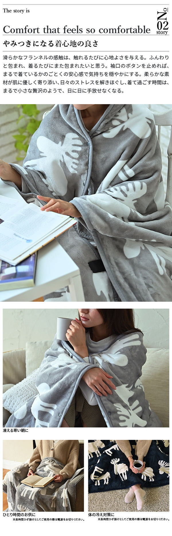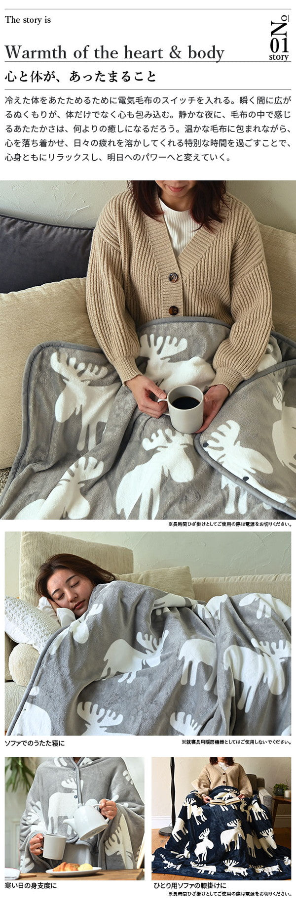 日本製 電気毛布 ブランケット 北欧 とろけるフランネル 着る電気毛布 curun クルン エルク柄 ノルディックスタイル 140×180cm ロングサイズ 着る毛布 電気ブランケット 電気ひざ掛け あったか(代引不可)