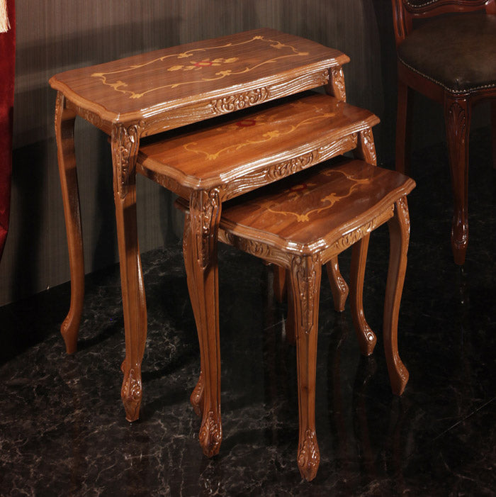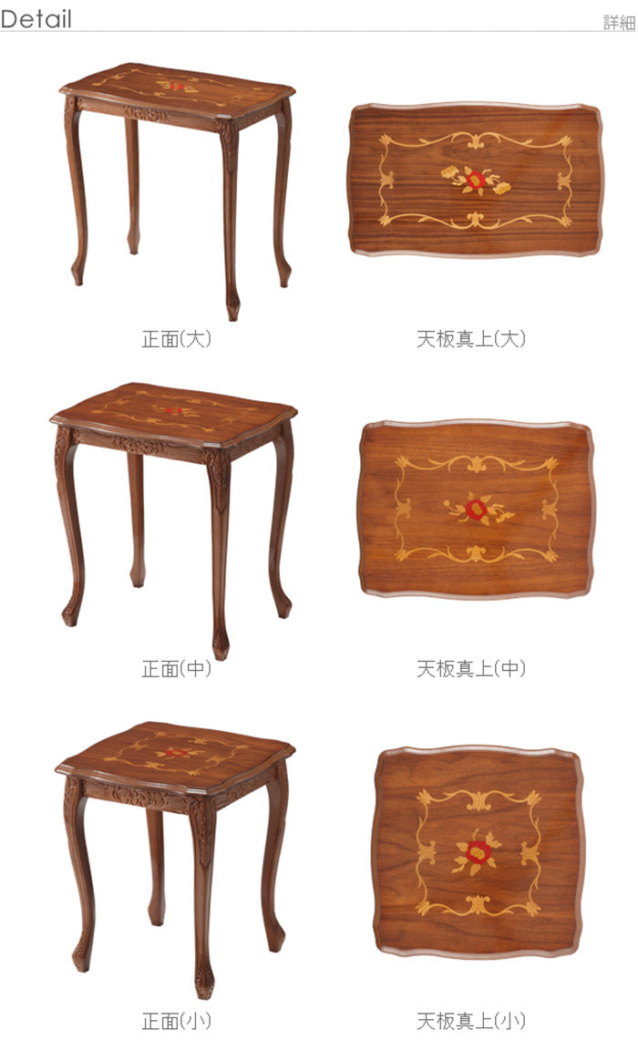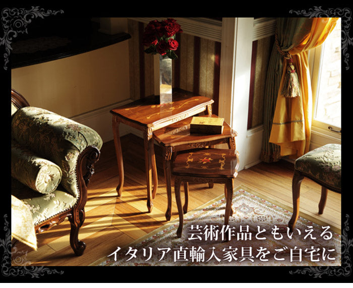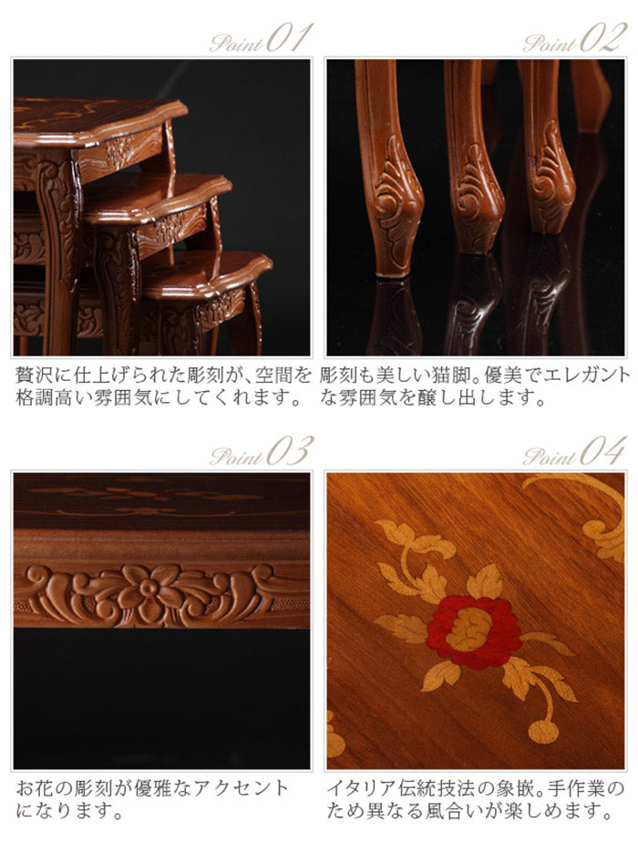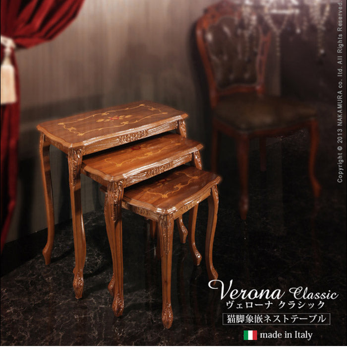 イタリア 家具 ヨーロピアン ヴェローナクラシック 猫脚象嵌ネストテーブル 猫脚 リビング ヨーロッパ家具 クラシック 輸入家具 アンティーク風 イタリア製 ブラウン おしゃれ 高級感 エレガント 木製(代引不可)