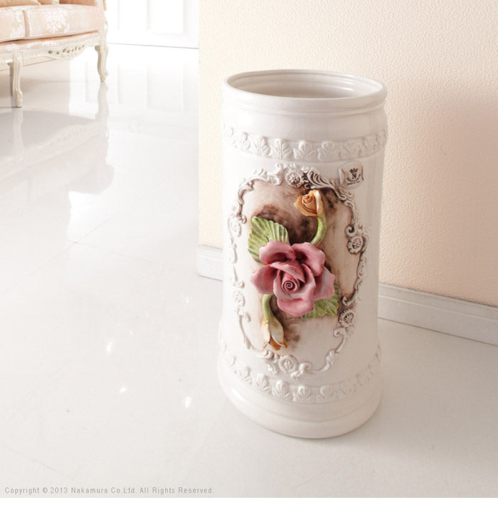 イタリア 家具 ヨーロピアン ヴェローナクラシック 陶製傘立て-ローズ 傘 玄関 ヨーロッパ家具 クラシック 輸入家具 アンティーク風 イタリア製 おしゃれ 高級感 エレガント リモート テレワーク 在宅(代引不可)