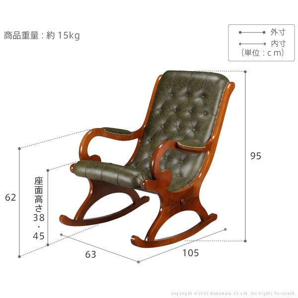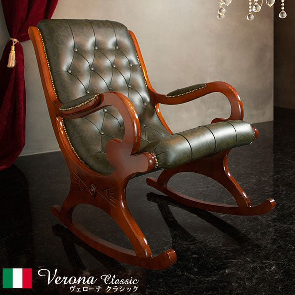 完成品 イタリア製 ヴェローナ クラシック ロッキングチェア 革張り チェア パーソナルチェア イス 高齢者 北欧 アンティーク おしゃれ レトロ 肘付き アーム付き(代引不可)