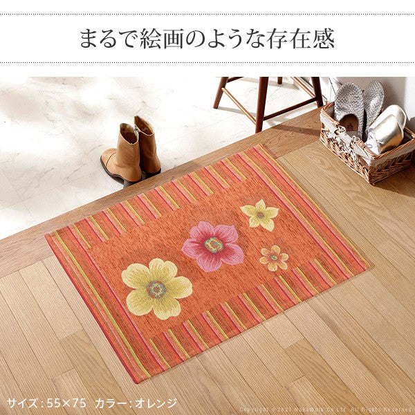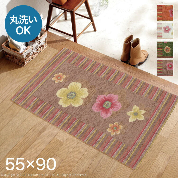 イタリア製 ジャガード 玄関マット 室内 フィオーレ 汚れ 入り口 55×90 洗える 丸洗い 長方形 おしゃれ かわいい 北欧 ウォッシャブル 屋内(代引不可)