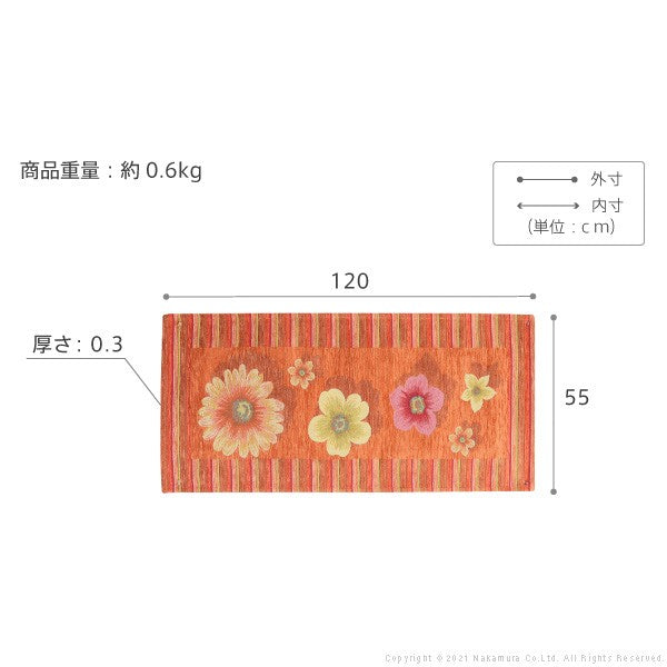 イタリア製 ジャガード キッチンマット フィオーレ 汚れ 55×120 洗える 丸洗い 長方形 おしゃれ かわいい 北欧 ウォッシャブル(代引不可)
