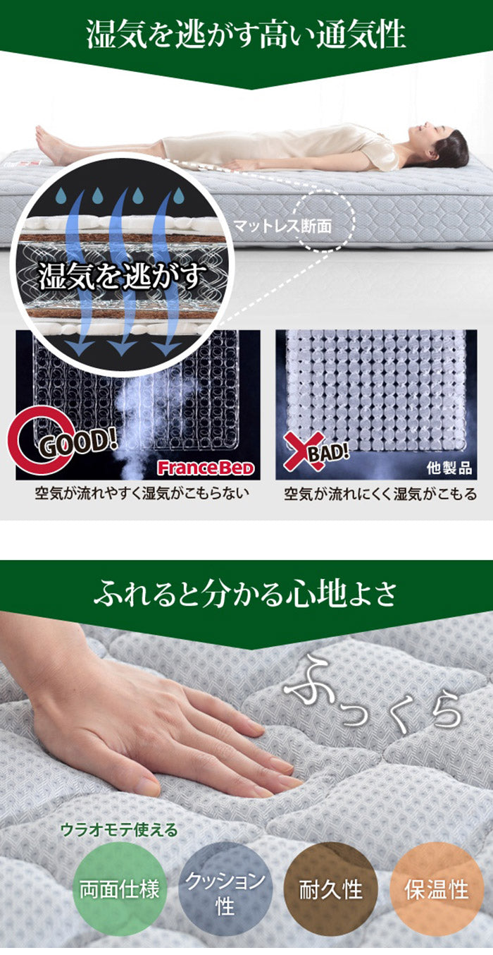 フランスベッド ツインサポートスプリングマットレス シングル 高密度連続スプリングマットレス 防ダニ 抗菌 防臭 寝具 日本製 国産 マットレスのみ ツインサポート(代引不可)