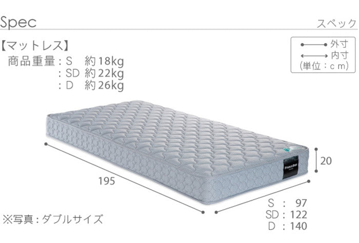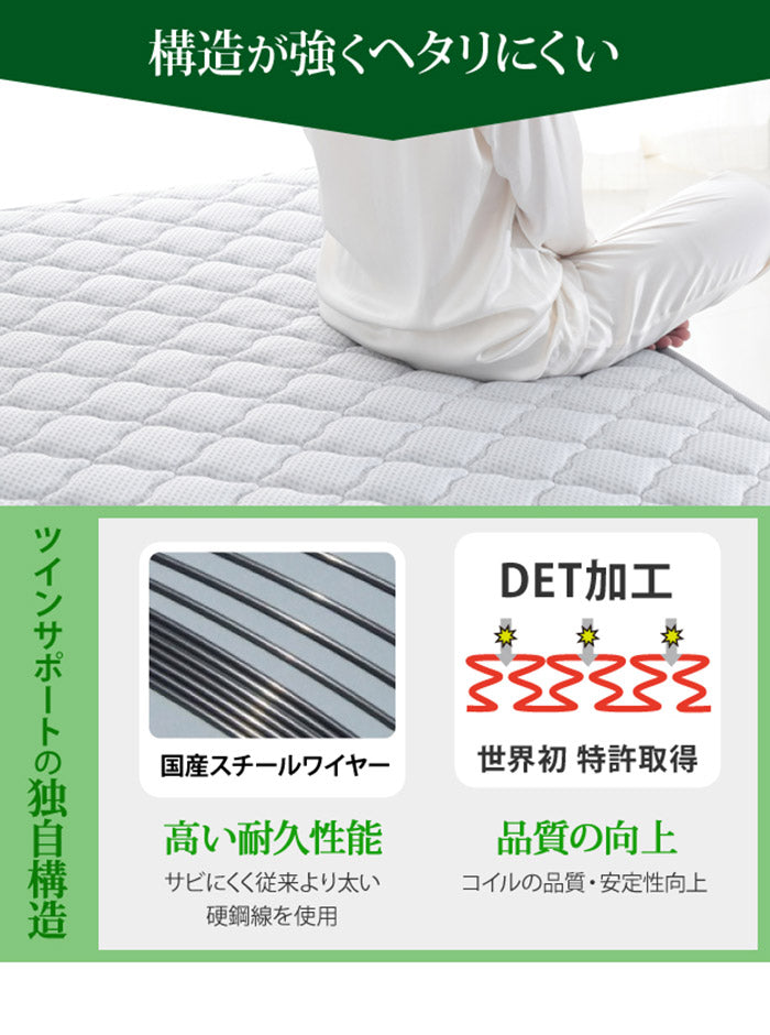 フランスベッド ツインサポートスプリングマットレス ダブル 高密度連続スプリングマットレス 防ダニ 抗菌 防臭 寝具 日本製 国産 マットレスのみ ツインサポート(代引不可)