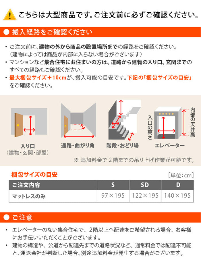 ●商品サイズと設置場所、搬入経路のご確認をお願いいたします。