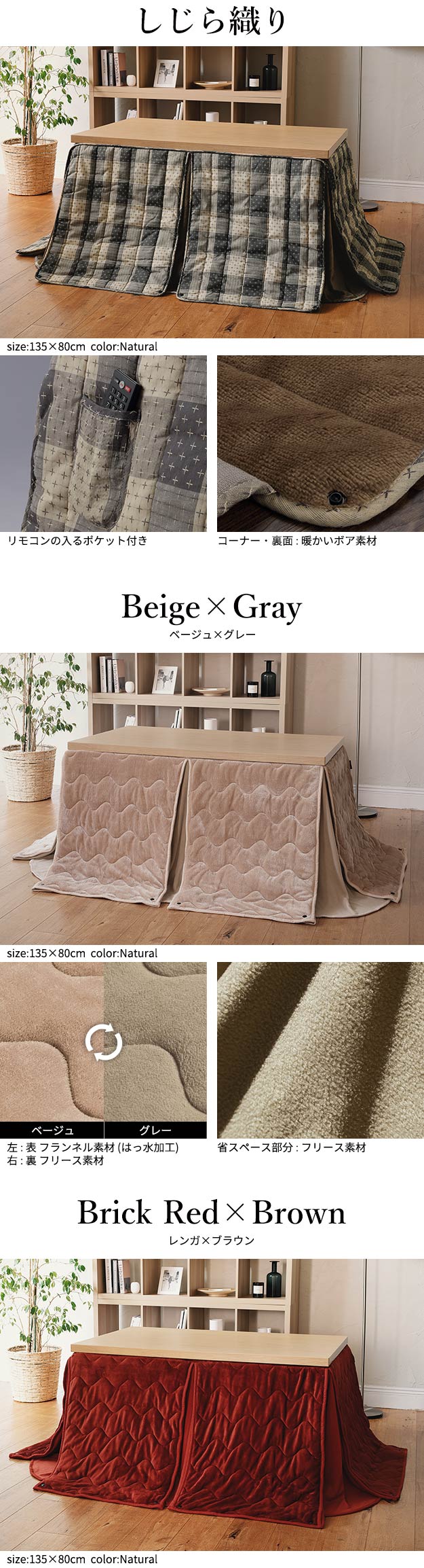 ブラウン×ベージュ・チャコール×ベージュ・サックス×ベージュ/しじら織り・ベージュ×グレー・レンガ×ブラウン