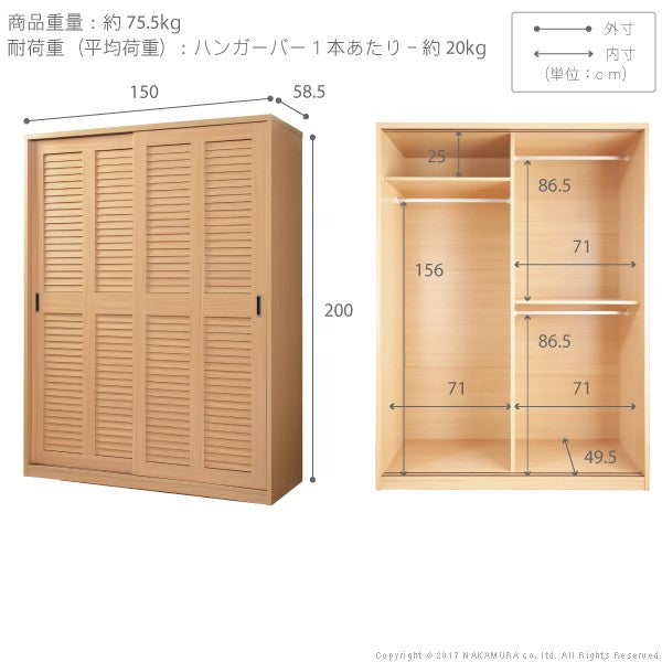 幅150x奥行58.5x高さ200cm
