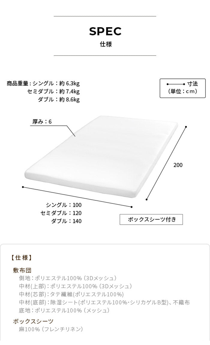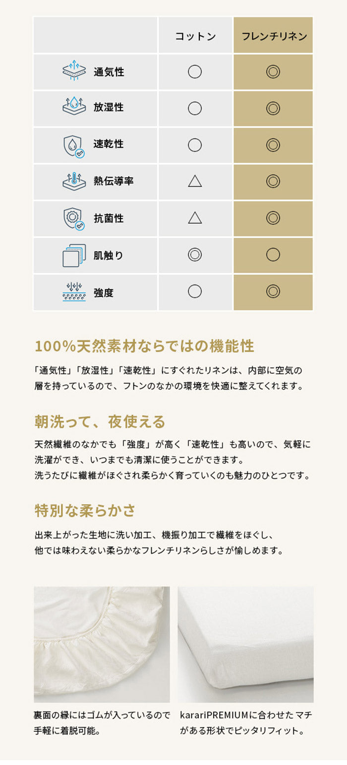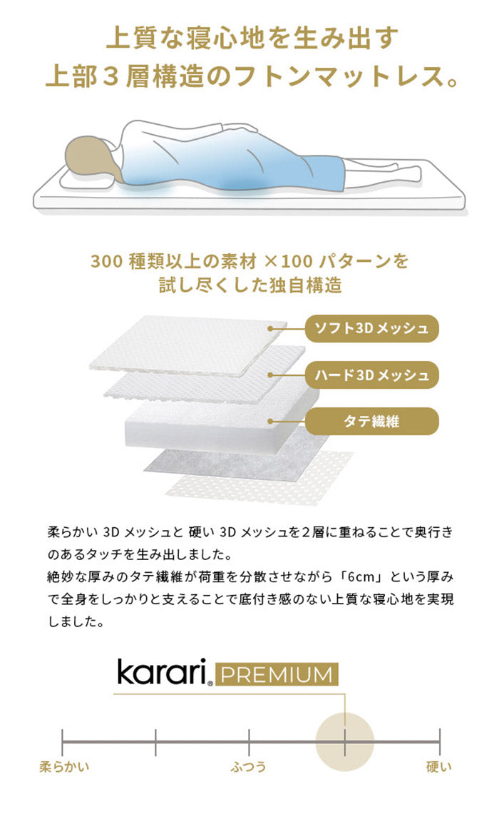 敷布団 敷き布団 マットレス フトンマットレス karari PREMIUM カラリプレミアム セミダブル SD 高級リネンシーツ付き 5層構造 除湿 通気性 極厚 硬め クッション性 部屋干し カビ防止(代引不可)