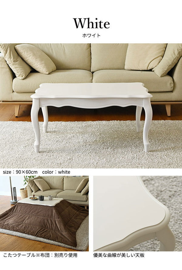 ねこ脚こたつテーブル フローラ 90×60cm SAI 彩 長方形 こたつ単品 継ぎ脚 高さ調節 ローテーブル おしゃれ エレガント 姫系 フレンチカントリー クラシック クラシカル かわいい 白 ホワイト(代引不可)