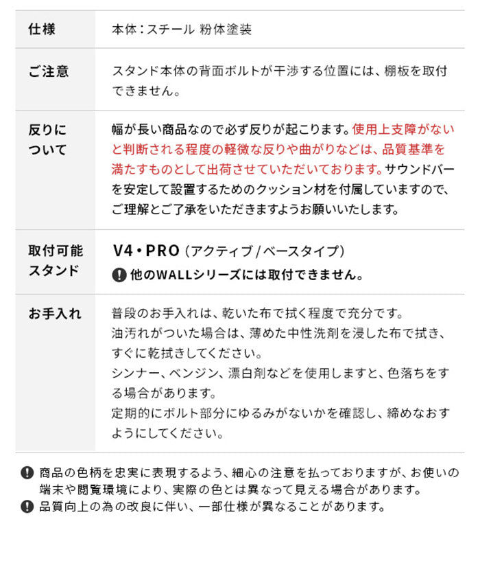 WALLインテリアテレビスタンドV4・PRO対応 サウンドバー棚板 LLサイズ 幅130cm スピーカー用 オーディオ用 シアターバー用 テレビ台 テレビスタンド TVスタンド 部品 パーツ スチール製(代引不可)