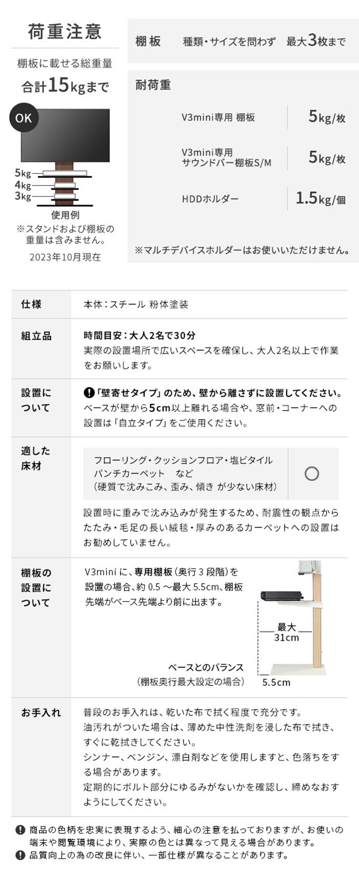テレビ台 WALLインテリアテレビスタンドV3 mini 24~55v対応 壁寄せテレビ台 TVスタンド 背面収納 コード収納 ミニ 小型 コンパクト 木目 震度7耐震試験済み EQUALS イコールズ(代引不可)