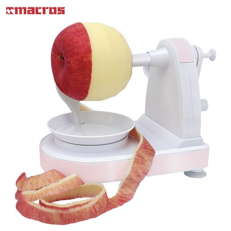 りんごを刺してハンドルを回すだけ。あっという間に簡単皮むき!