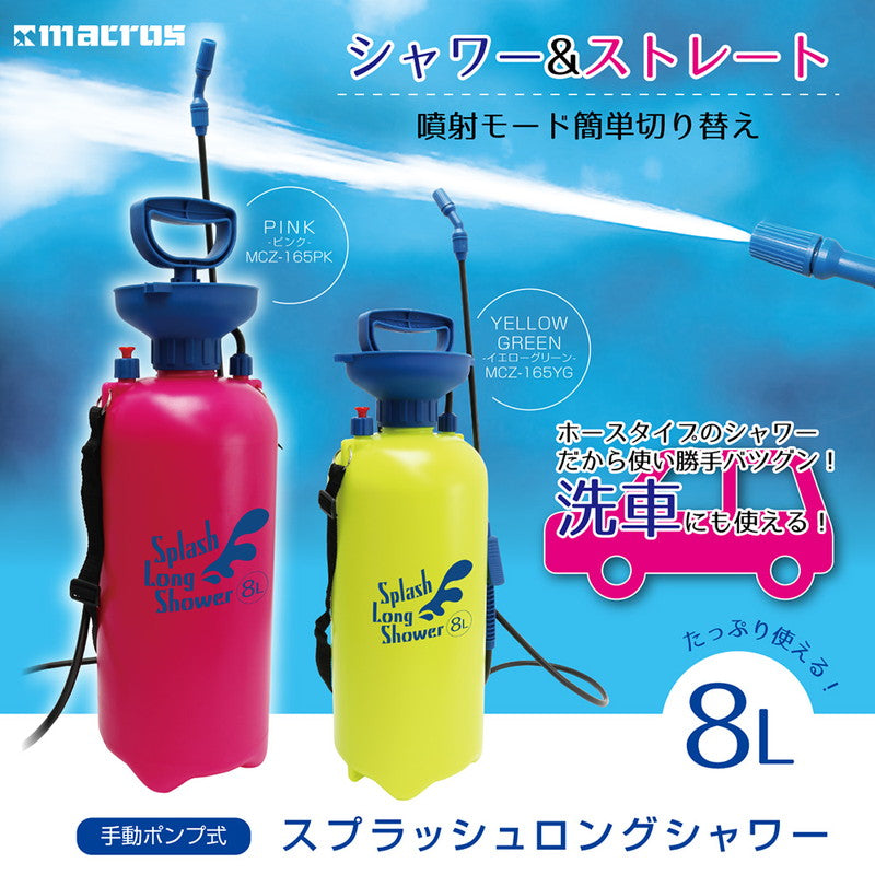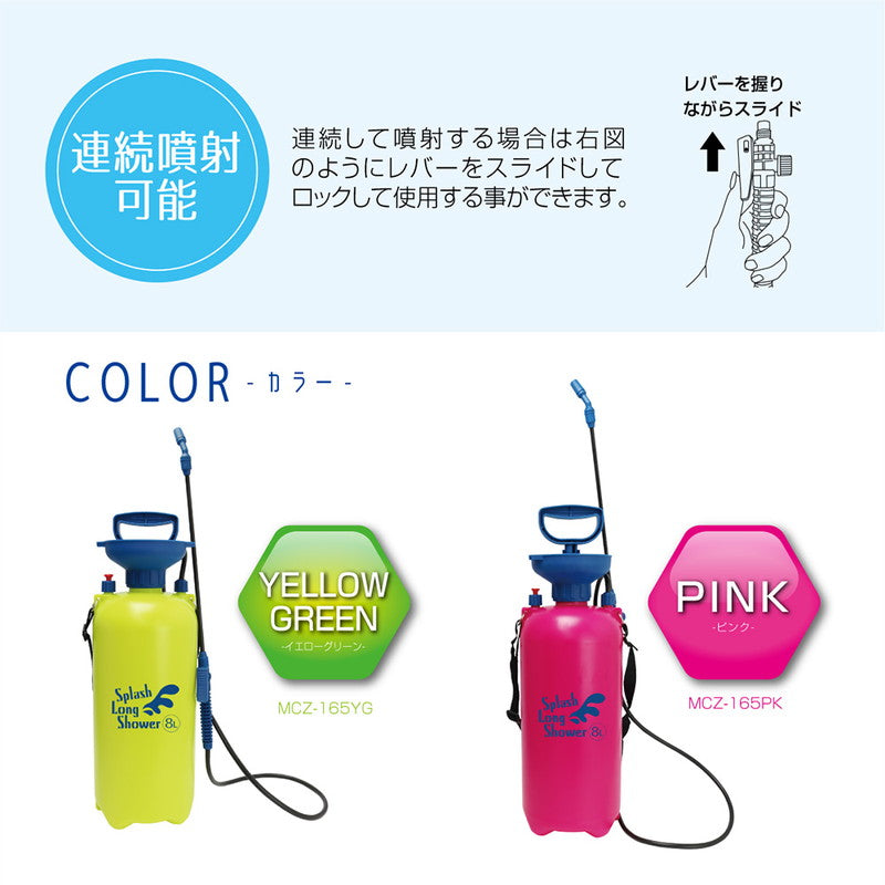 圧力式シャワー スプラッシュシャワー ロングノズル イエローグリーン シャワー 手動ポンプ 熱中症対策 海水浴 グッズ MCZ-165