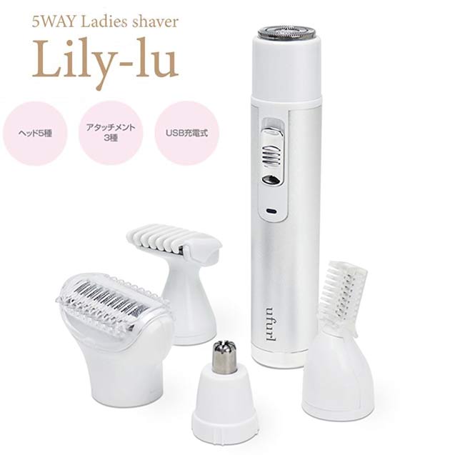 5種類セット 充電式 5WAYレディースシェーバー リリール MEBL-127 フェイス 鼻毛 耳毛 眉毛 ムダ毛処理