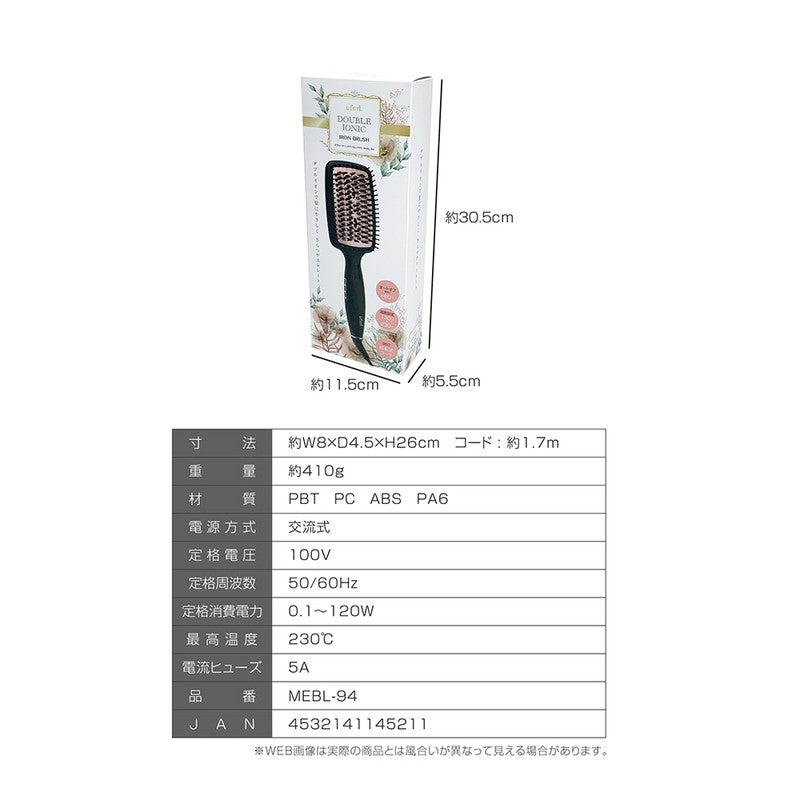 ダブルイオニックアイロンブラシ ヘアーアイロン 毛先カール 360度回転式コード マイナスイオン 最高温度230℃ 大きめ スタイリング ストレート カール アイロン アイロンブラシ ブラシ