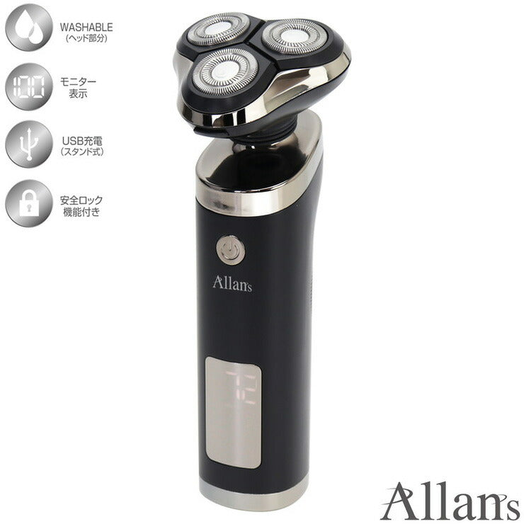 3枚刃シェーバー リシュタイル デジタル表記 ウォッシャブル 安全ロック付き コードレス 充電器付き MEBM-49 髭剃り見出しなみ