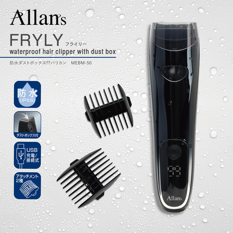 ダストボックス付バリカン フライリー 防水 デジタル表示 USB充電式 バリカン トリマー アタッチメント付属 セルフ MEBM-50